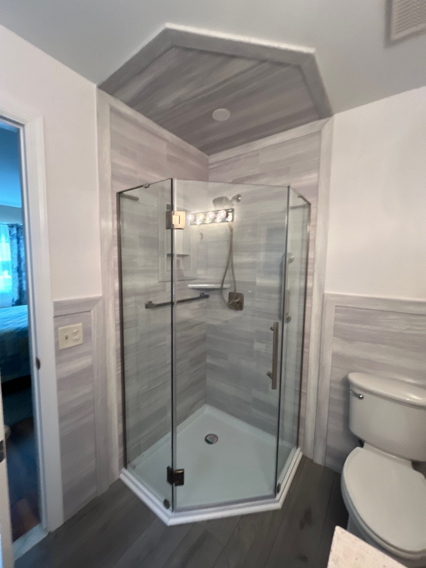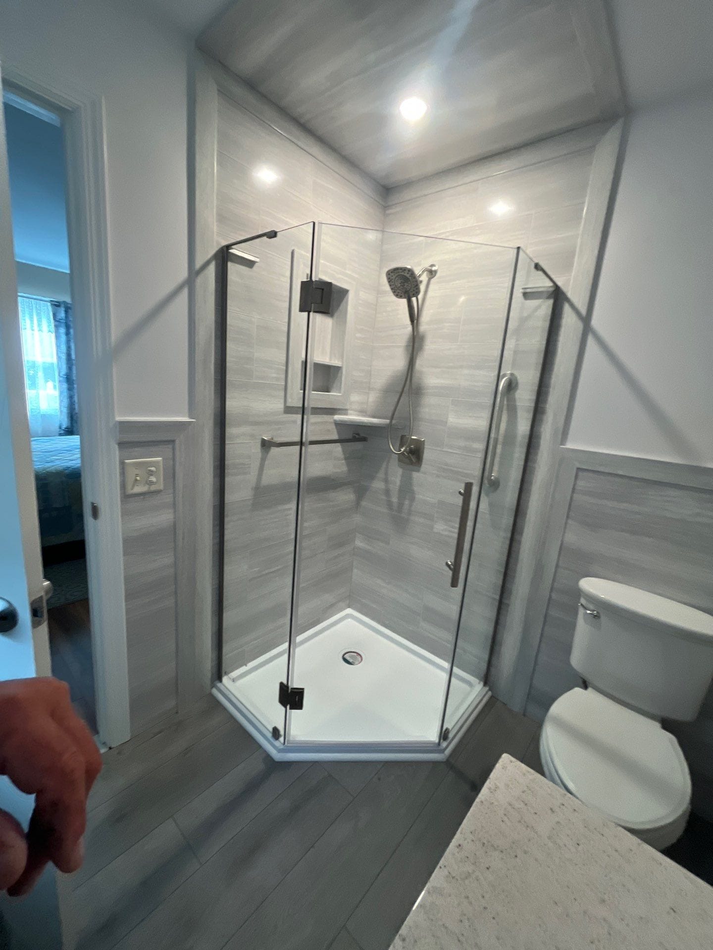 The installation plan included complete demolition of the existing enclosure down to the studs, followed by installation of new plumbing lines and moisture-resistant drylock backer. A production manager would return after consultation to confirm exact dimensions and placements for fixtures and shelving. Installation was projected to occur within six to eight weeks, with the remodel completed in one to three days depending on site conditions. All work would be handled by Five Star Bath Solutions’ licensed and background-checked in-house team, with home protection protocols in place using drop cloths and HEPA dust filtration.