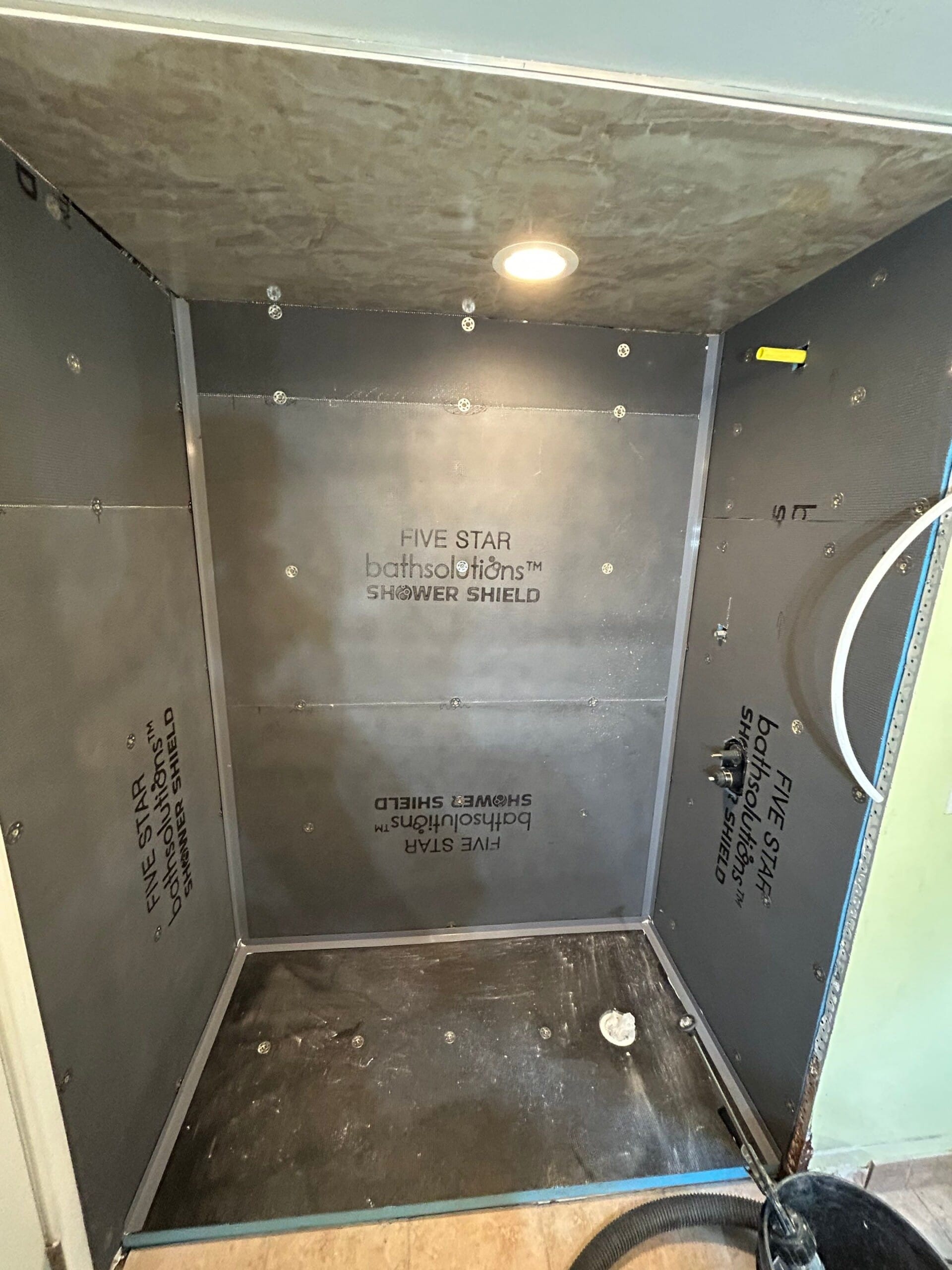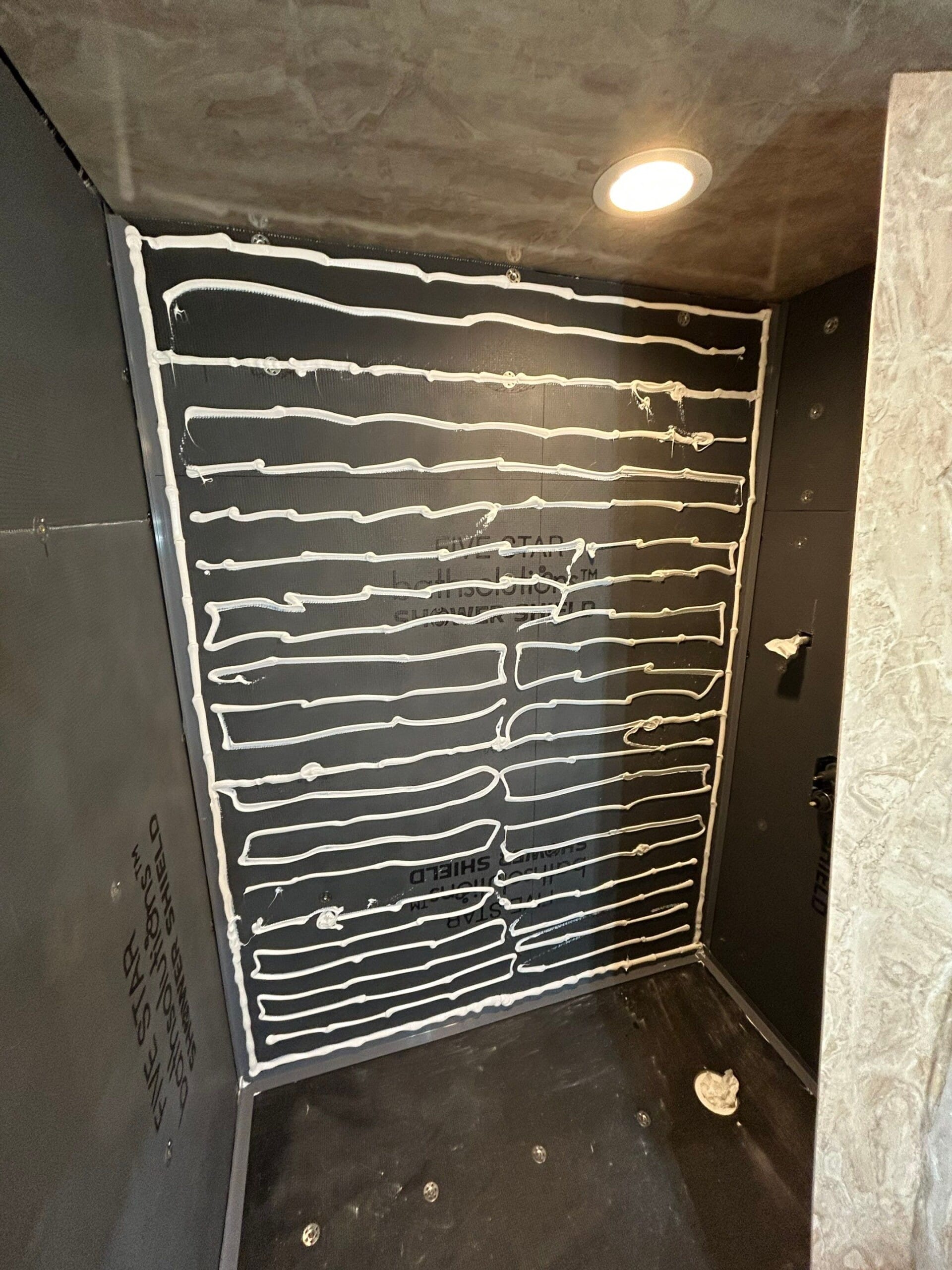 The Representative presented Five Star Bath Solutions as a bathroom-focused company delivering long-term solutions through grout-free systems and professional installation practices. The finished shower reflected this approach with full-height, non-porous wall panels in a warm, stone-look pattern, coordinated matte black fixtures, and a simplified open-entry design using a curtain rod instead of a glass enclosure. Built-in corner shelving and a handheld shower system were incorporated to improve usability while maintaining a clean, streamlined look aligned with the customer’s request for simplicity and function.