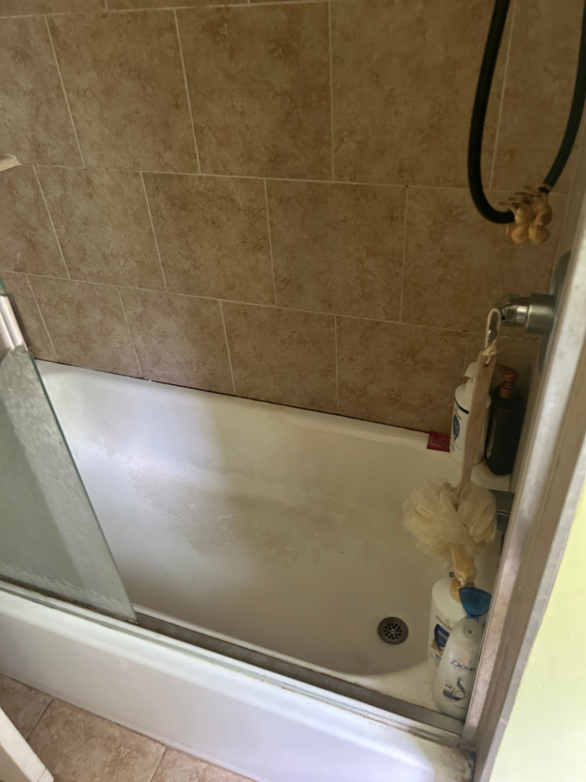 The Representative explained that installation would include removing the existing tub, tile, and glass enclosure down to the studs, followed by inspection and necessary structural or moisture-related corrections. The completed project shows a low step-in shower base, wall panels carried to the ceiling line, updated plumbing fixtures, and securely installed accessories. The process also included protecting surrounding areas, verifying final measurements, and completing the installation within a one to two day timeframe once materials were ready.
