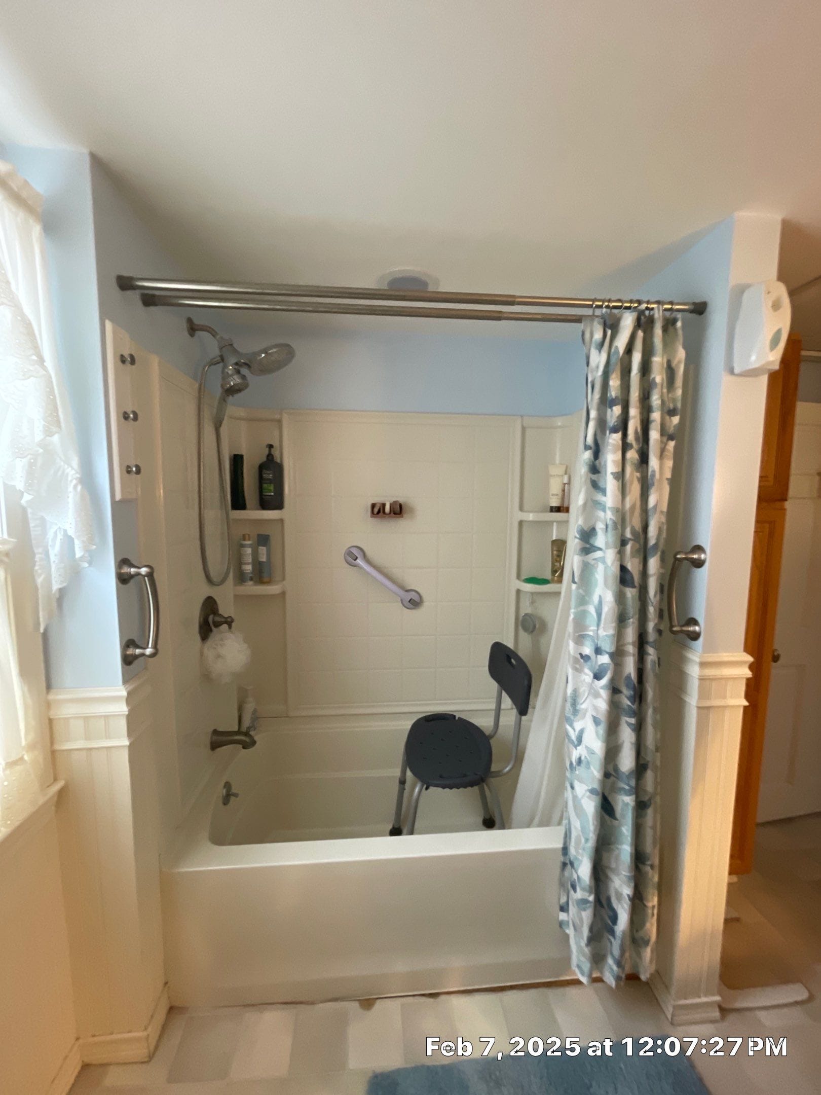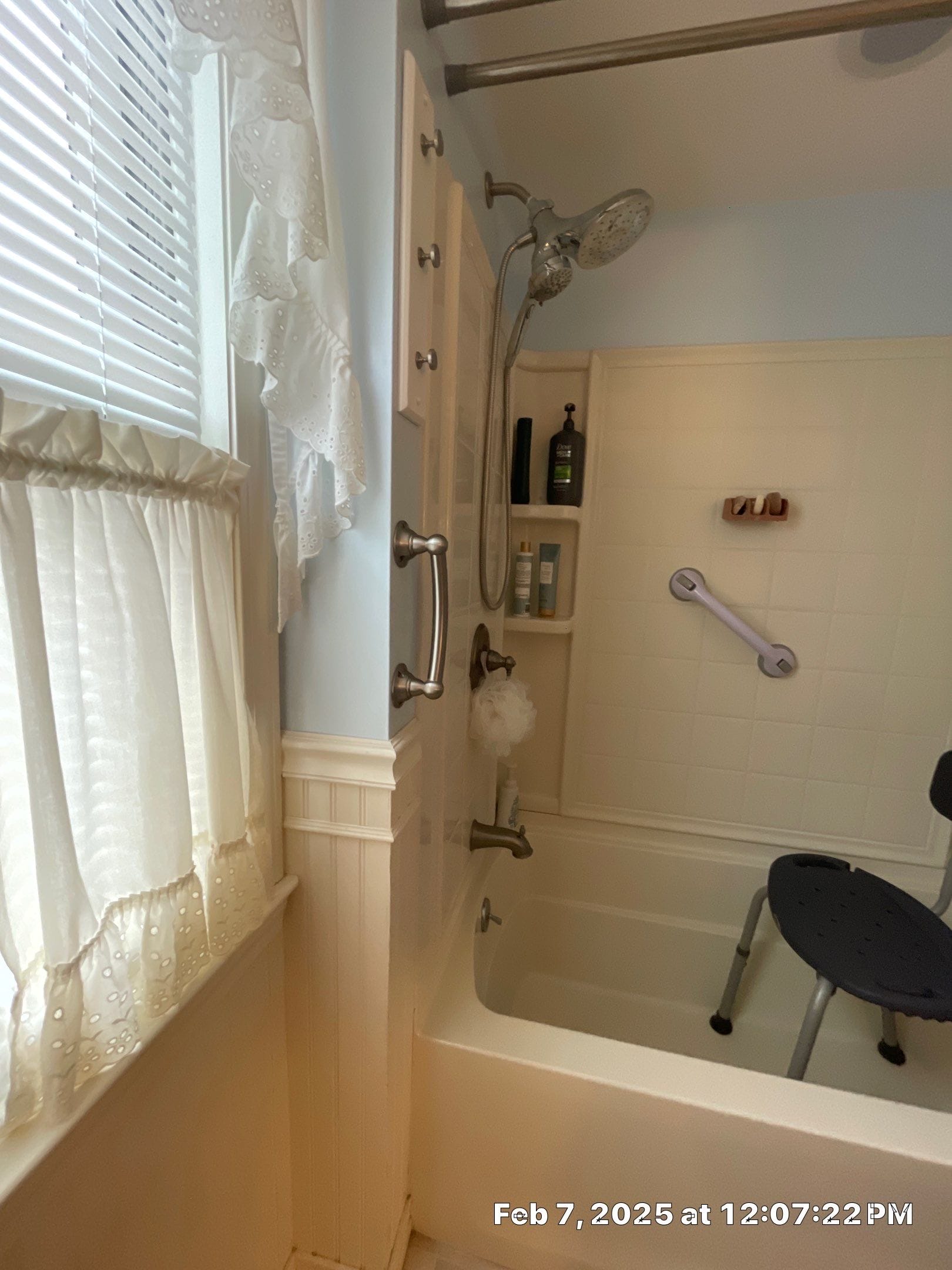 * Commercial-grade handheld shower system with grab bar