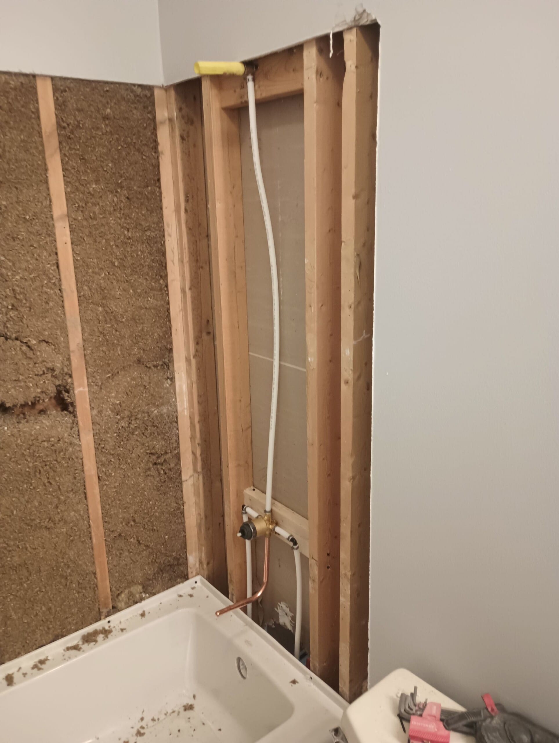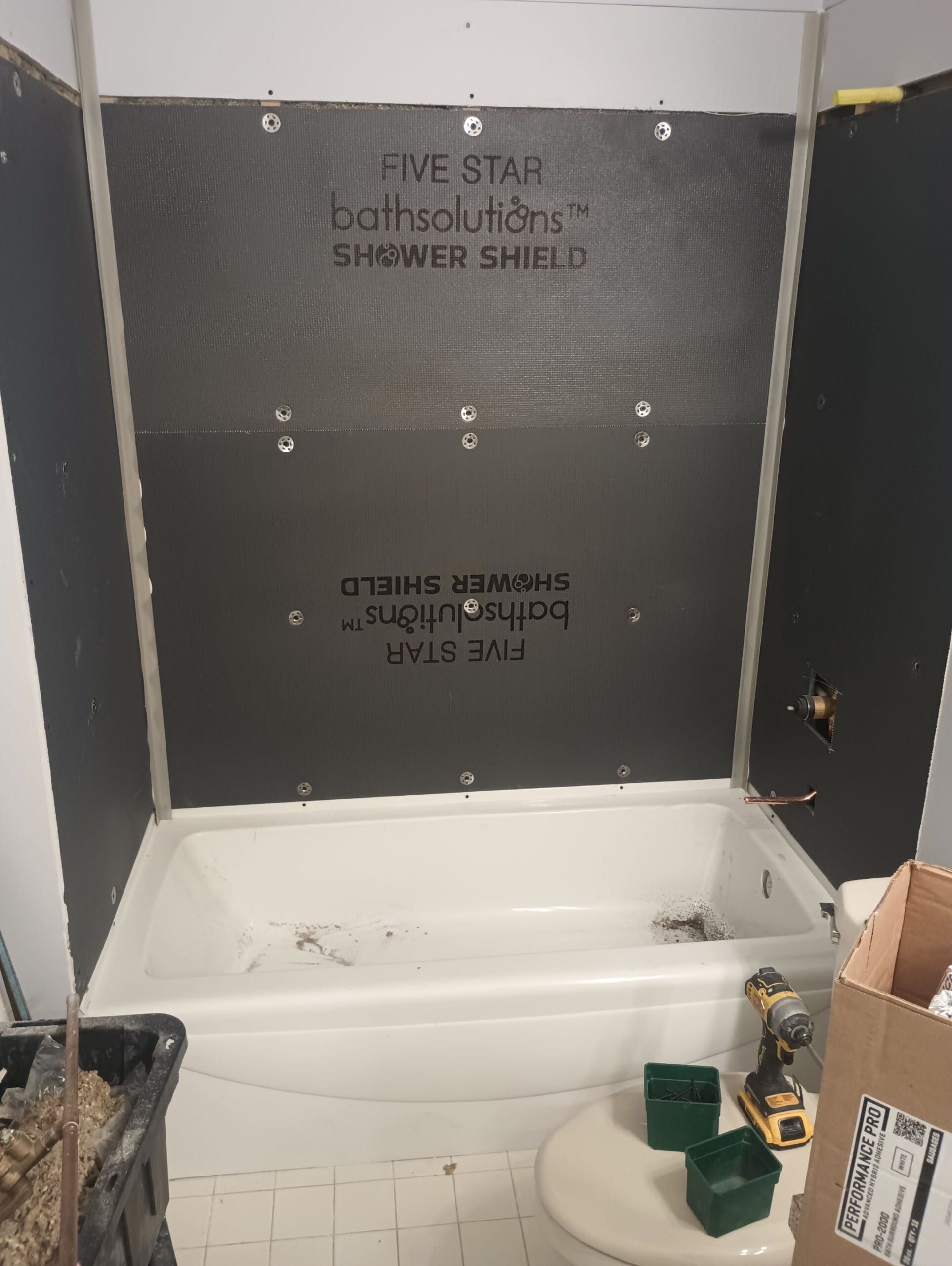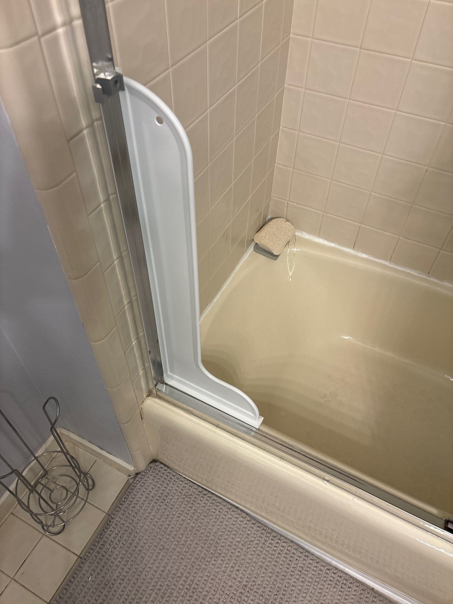 The installation process included a full removal of the existing tub, tile, and enclosure down to the studs, followed by inspection of the underlying structure to address any moisture-related concerns. After preparation, a new bathtub and wall system were installed, along with updated plumbing fixtures and a streamlined glass enclosure with a wider opening for improved access. The project was completed efficiently while maintaining site protection, cleanliness, and attention to detail throughout each phase of the remodel.