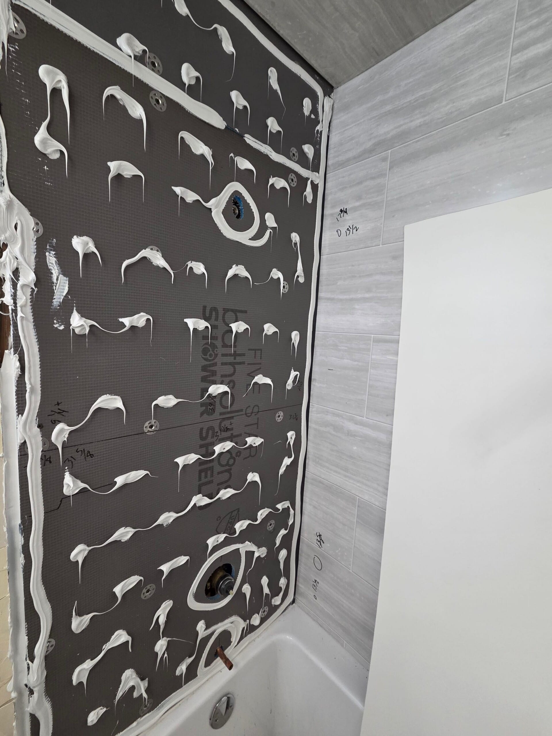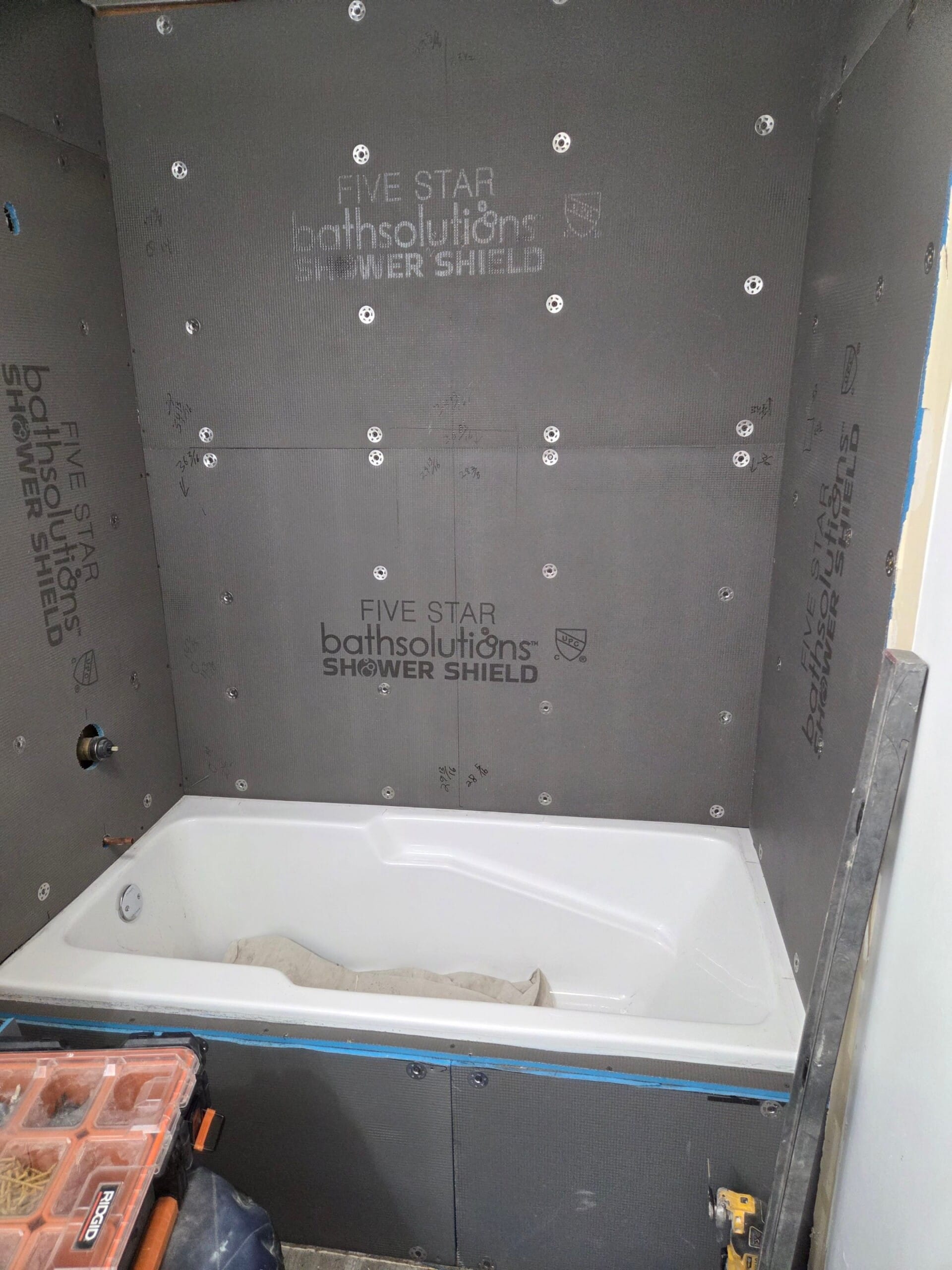 * Waterproof backing materials behind wall panels