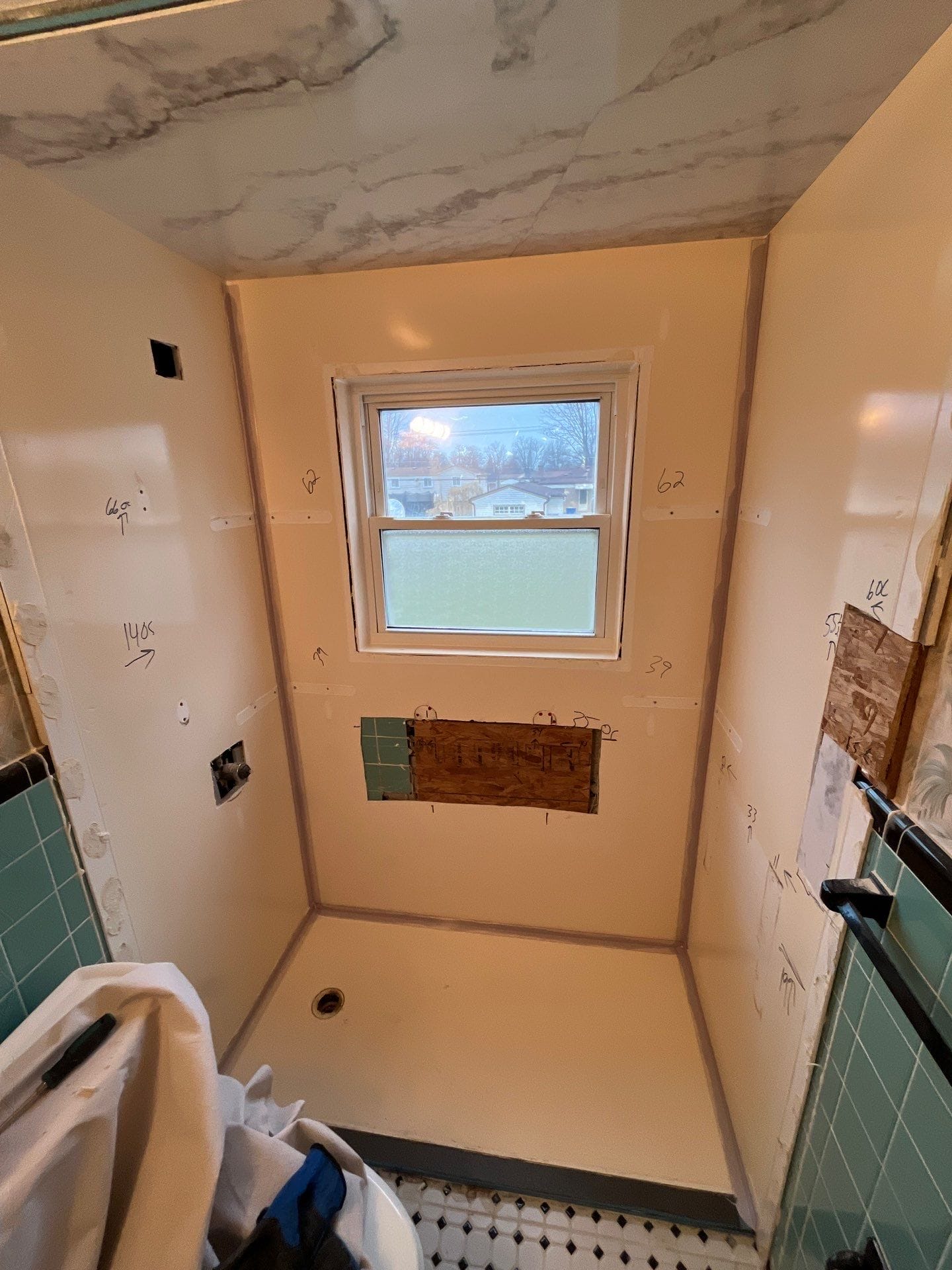 * Mold-resistant synthetic backer board behind walls