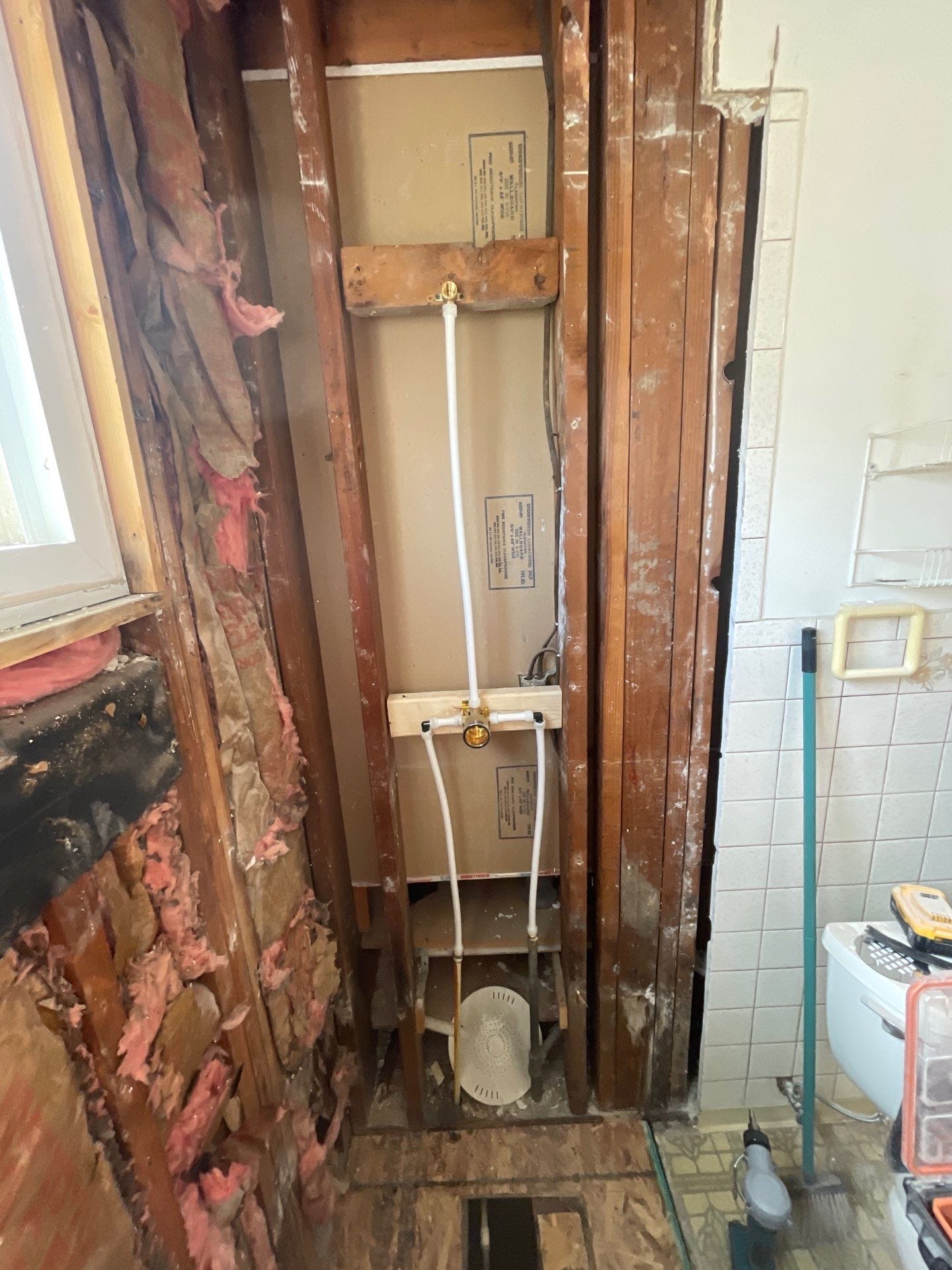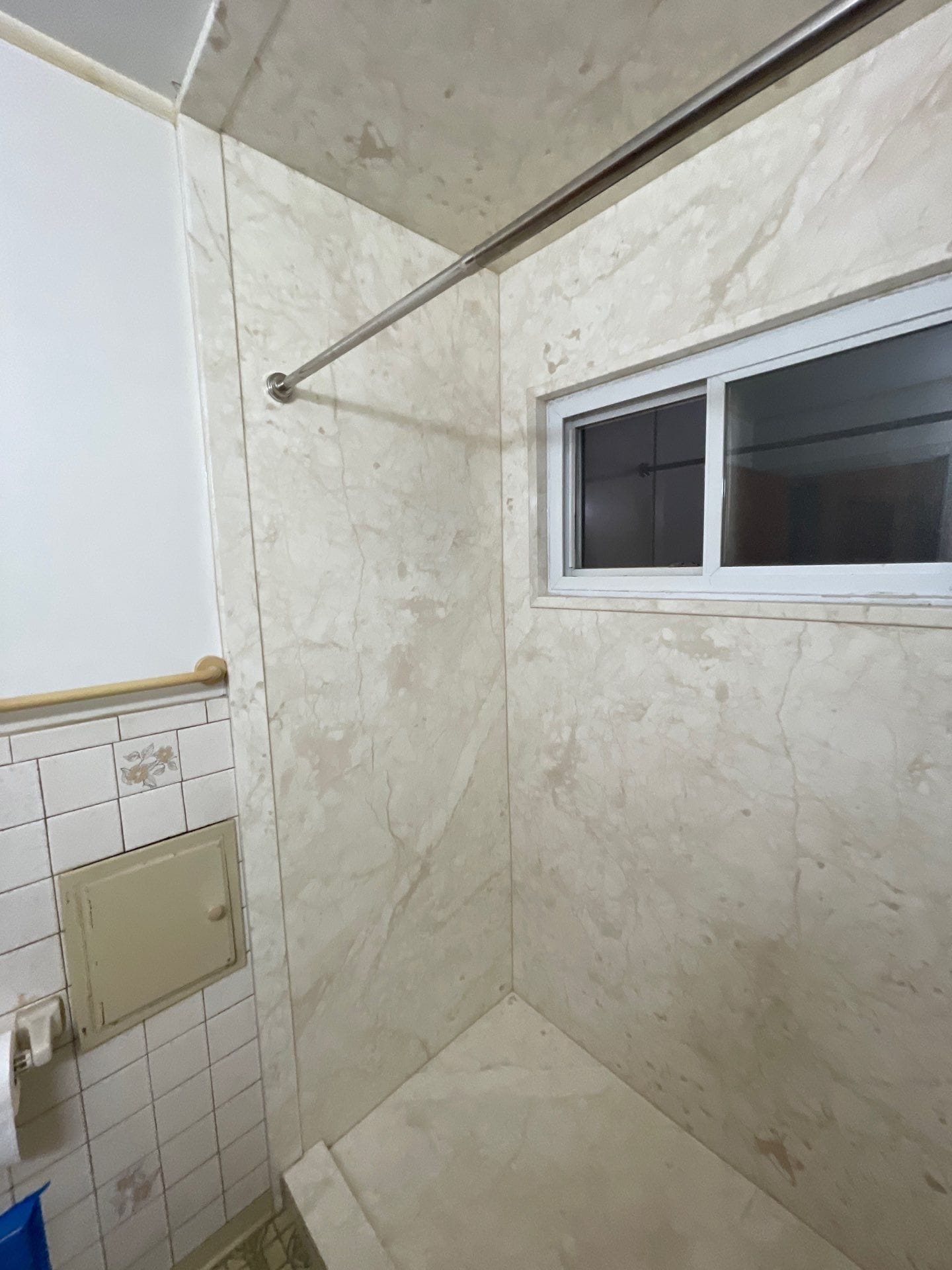 The installation process involved removing the existing bathtub, tile walls, and fixtures down to the studs, followed by inspection and preparation of the space. A new low-threshold shower base was installed to increase accessibility and open floor space, along with updated plumbing and wall panels fitted to the existing footprint. The shower curtain rod was retained for enclosure, and the existing window was integrated into the new wall system for continuity. The project was completed efficiently with proper site protection, debris removal, and attention to detail throughout the installation.