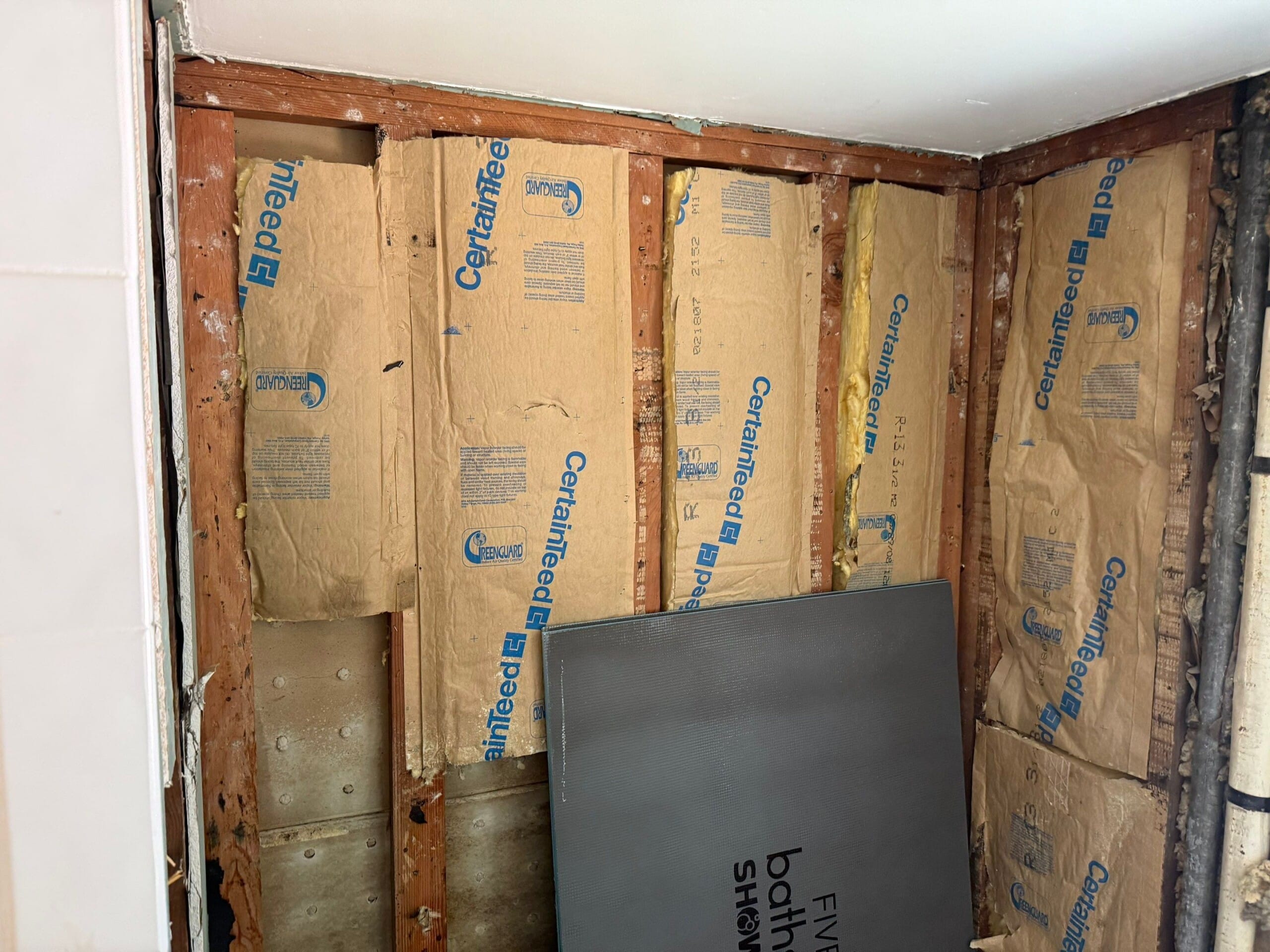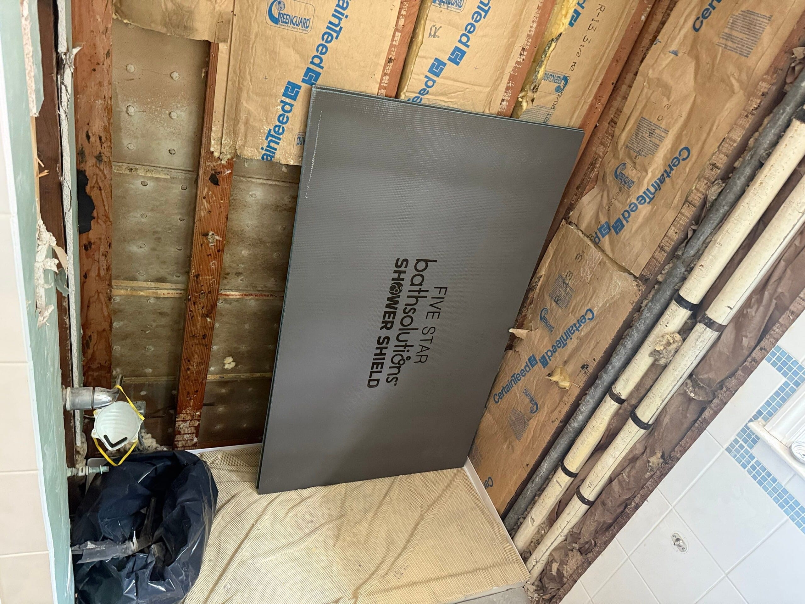 Installation included full demo to the studs, subfloor and framing checks, installation of ShowerShield non-organic backer boards, and replacement of all plumbing hardware with Delta Commercial fixtures. Work was completed in two days with an expanded crew to ensure pace and quality. A walkthrough was conducted upon completion to confirm all specifications were met. A project manager pre-verified dimensions ahead of material fabrication.