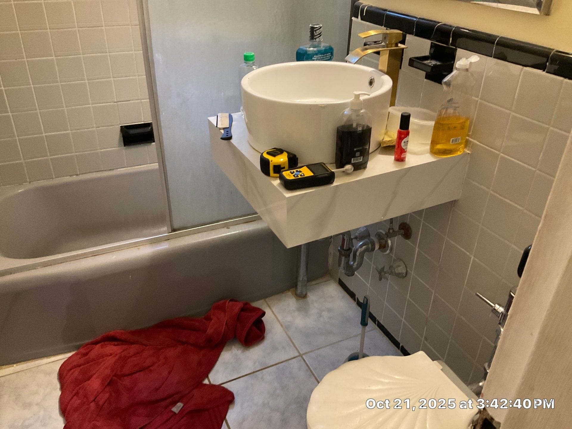 * Custom floating vanity and updated round basin installed